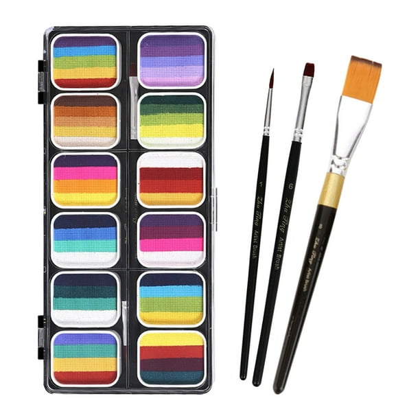Amazon Com Glow Uv Blacklight Face Painting Kit 9 Color Neon Face Paint Water Based Black Light Body Painting Palette With 4 Brushes Water Activated Halloween Glow In The Dark Party Cosplay Washable